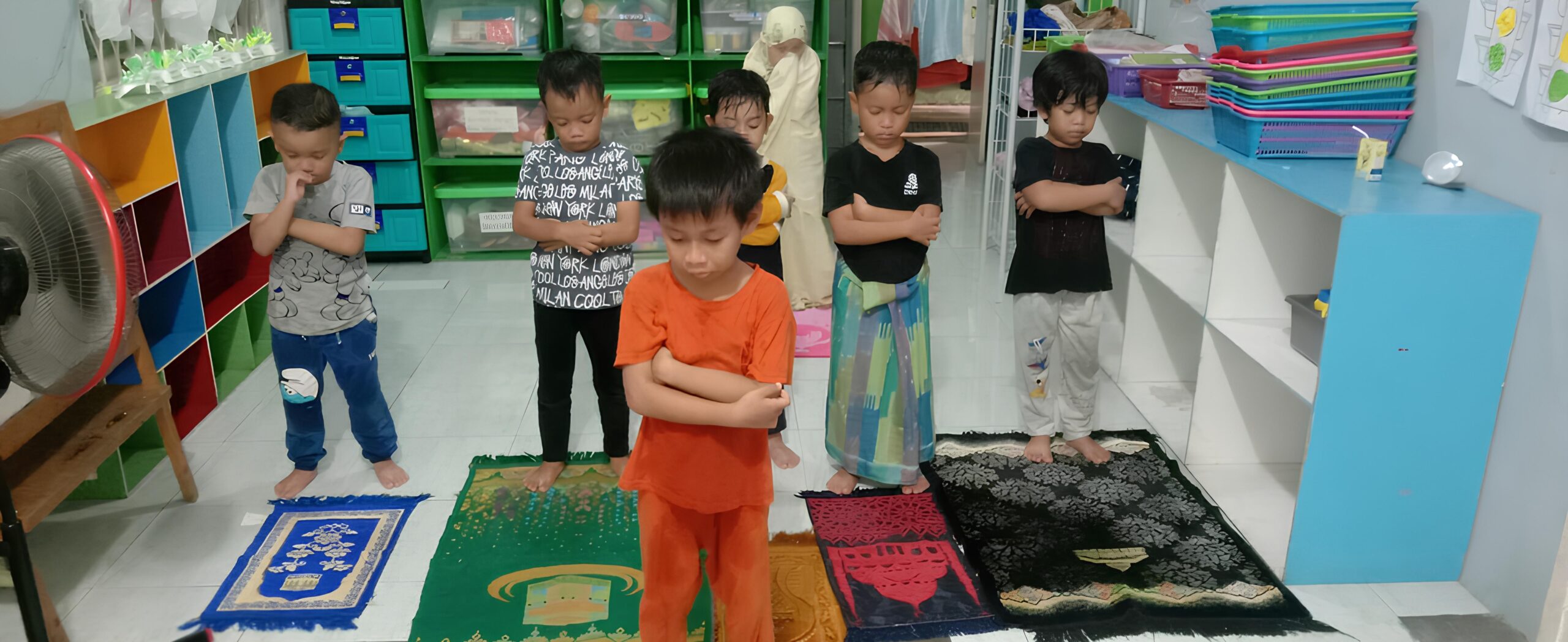 Kami menyediakan ruang sholat yang tenang dan bersih, memungkinkan anak-anak menjalankan ibadah dengan khusyuk